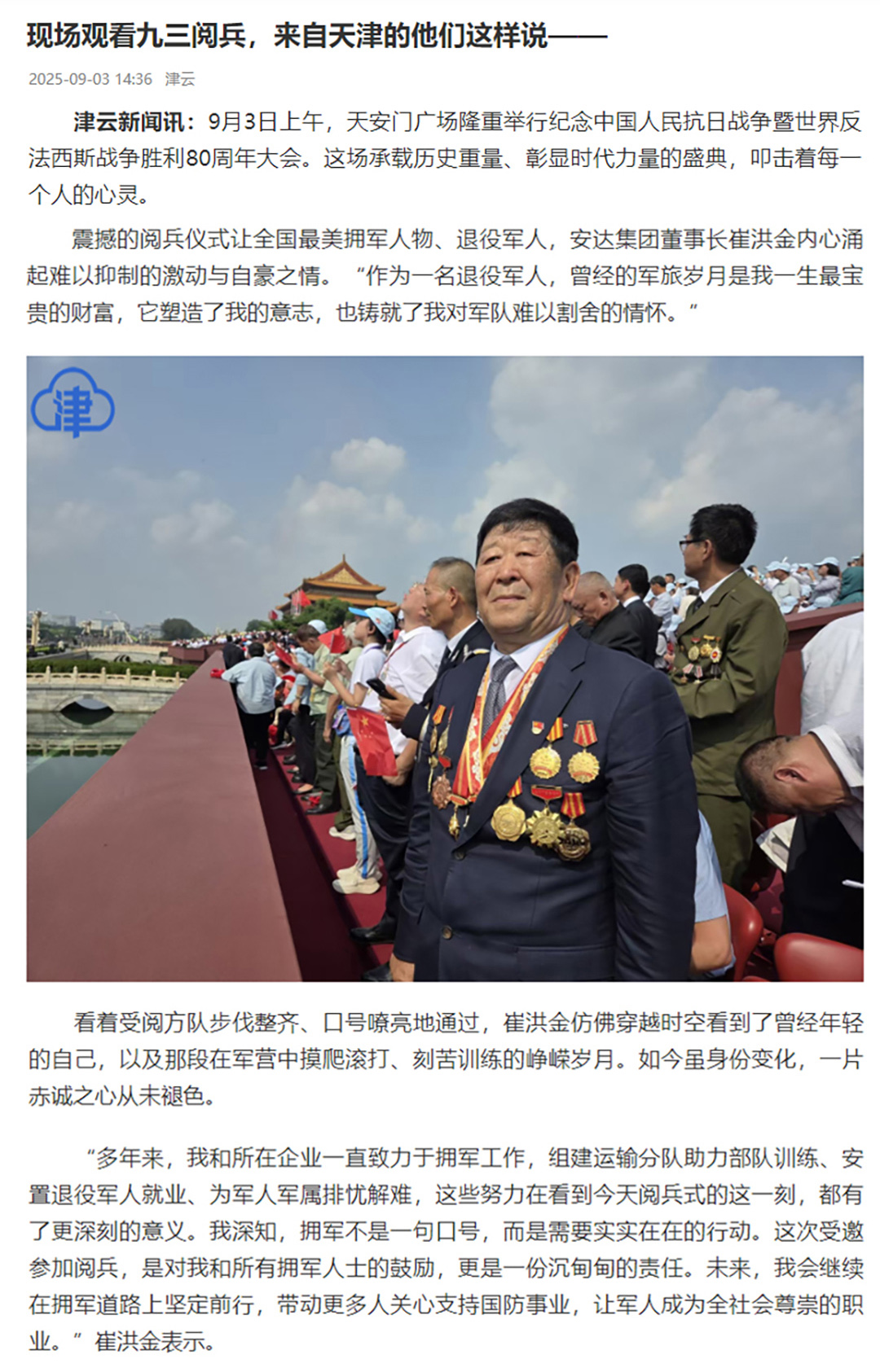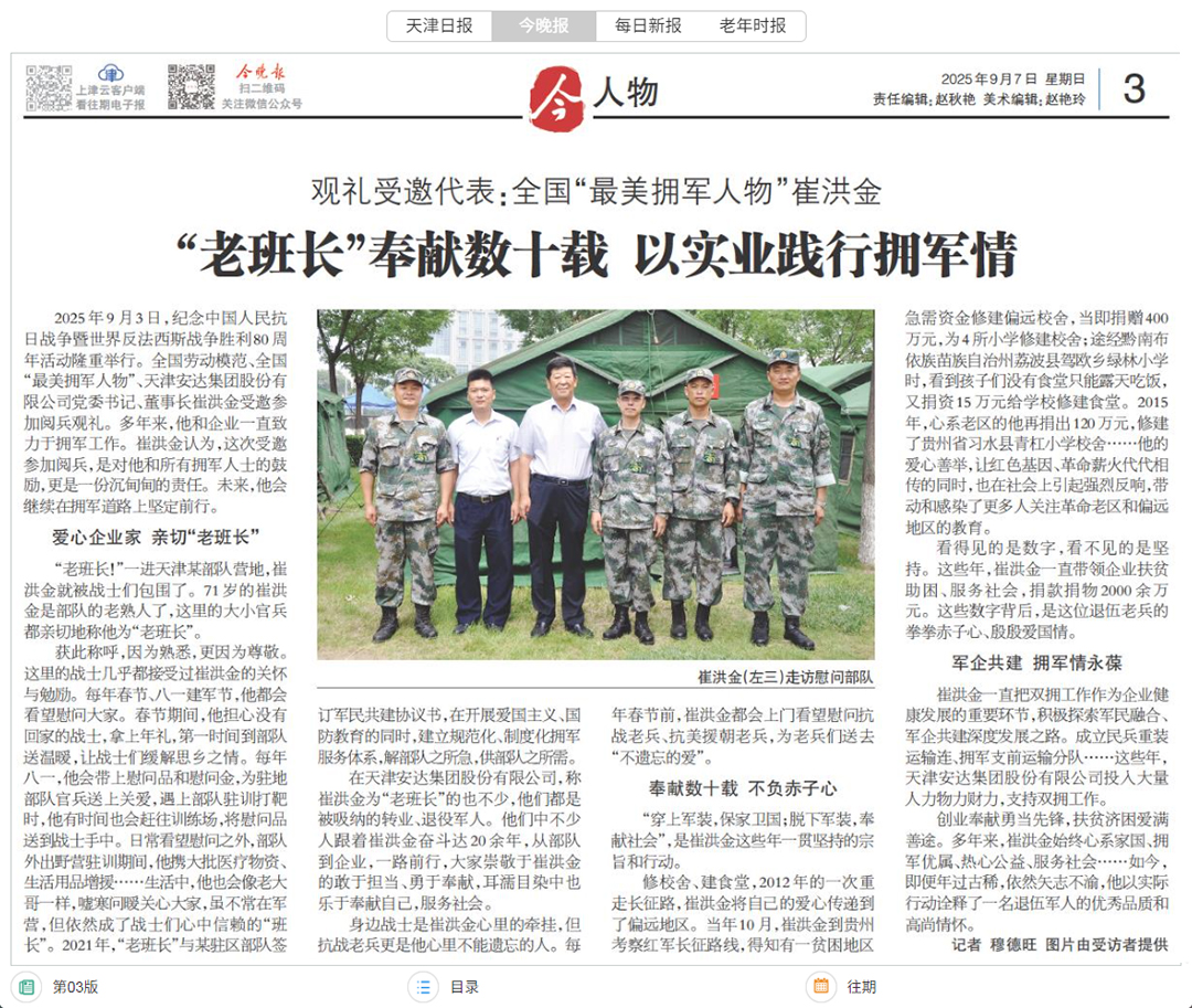 崔洪金参加9.3阅兵 天津《今晚报》专题...