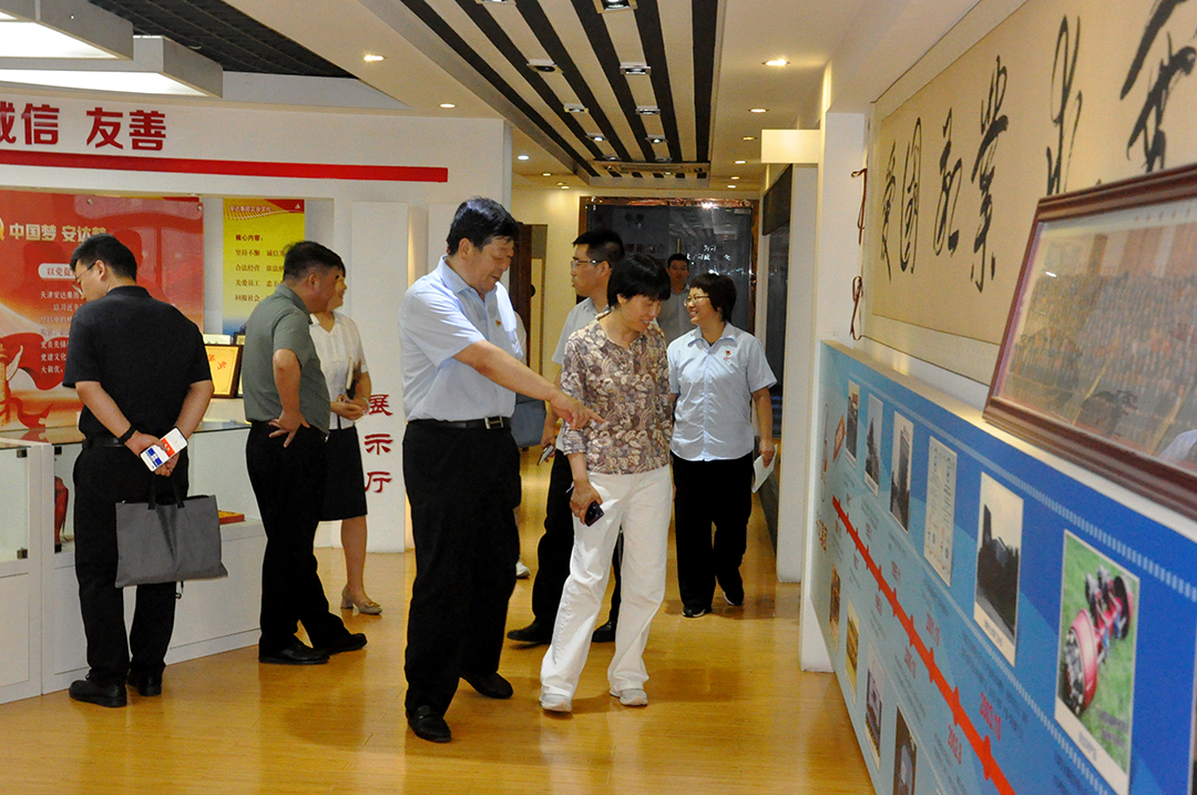 调研过程中,崔洪金陪同陈晖副书记先后参观了企业产业展厅与文化展厅。在产业展厅,详细介绍了集团在物流产业升级、环保设备研发(如厨余及农业废弃物生化处理设备)等领域的发展成果,以及全生态循环产业链的布局规划。文化展厅内,从企业 1988 年创立至今的发展历程、党建工作成果、“关心下一代” 公益实践等内容,全方位展现了安达集团 “诚信务实、担当奉献” 的企业文化内核。